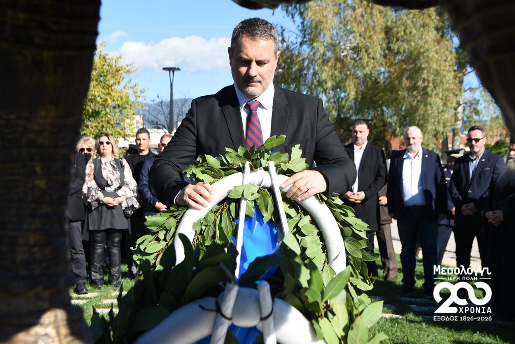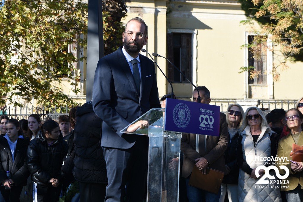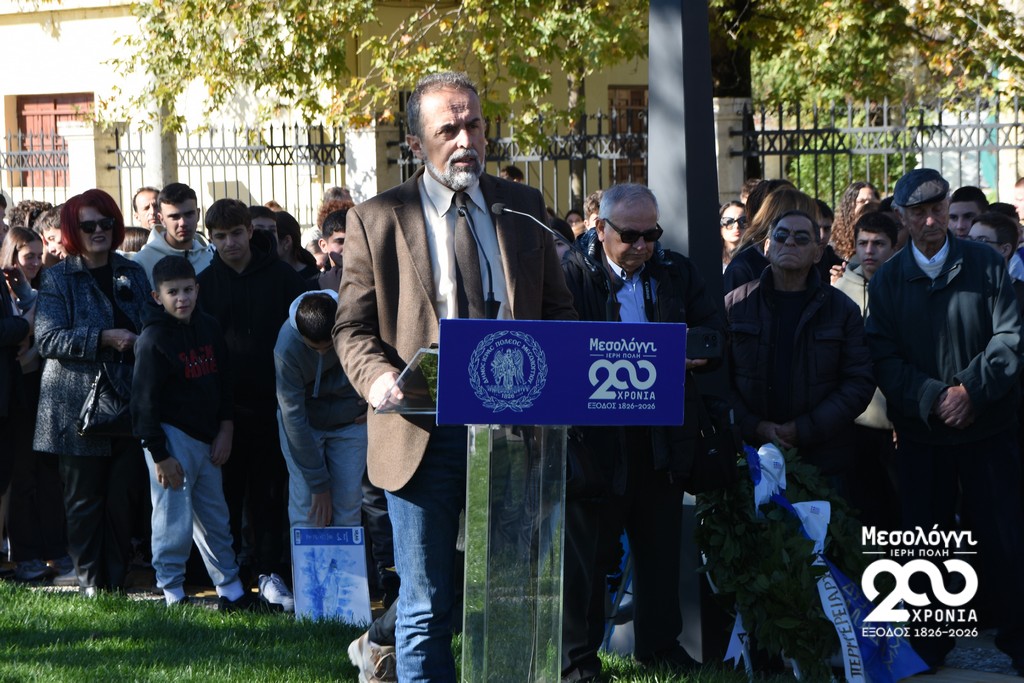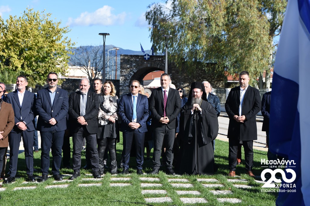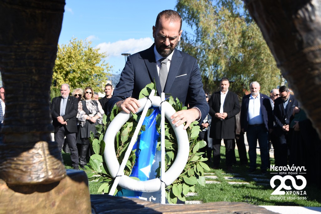 Στον χαιρετισμό του, ο Δήμαρχος Ιεράς Πόλεως Μεσολογγίου, κ. Σπυρίδων Διαμαντόπουλος, ευχαρίστησε θερμά τον Περιφερειάρχη Δυτικής Ελλάδας, κ. Νεκτάριο Φαρμάκη, για την πρωτοβουλία και τη γενναιόδωρη χειρονομία του να δημιουργηθεί ο ανδριάντας. Επίσης, ευχαρίστησε τους συνεργάτες του για την ολοκλήρωση της ανάπλασης της πλατείας Δημογέροντα Χρήστου Καψάλη, επισημαίνοντας ότι η αναβάθμιση της Πύλης και της εισόδου της πόλης δεν περιορίζεται μόνο στο αισθητικό μέρος. Αντιθέτως, αποσκοπεί στη δημιουργία ενός ιστορικού τοπόσημου, που θα συμβολίζει τη θυσία των ηρώων και θα ενισχύει τη συλλογική μνήμη του τόπου, με επιπλέον αναβάθμιση και εξωραϊσμό του χώρου.