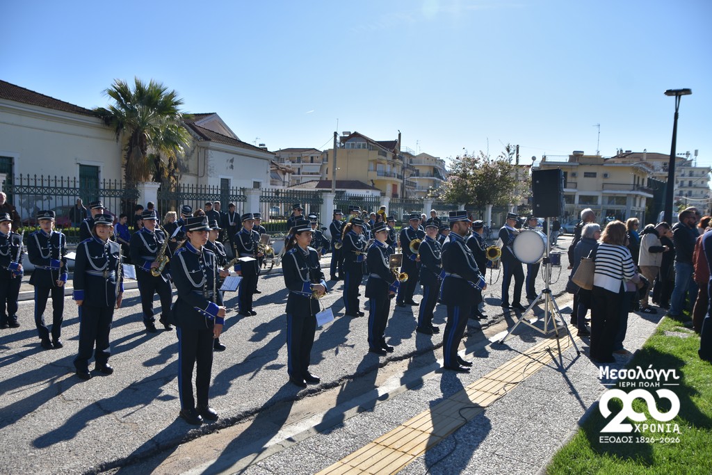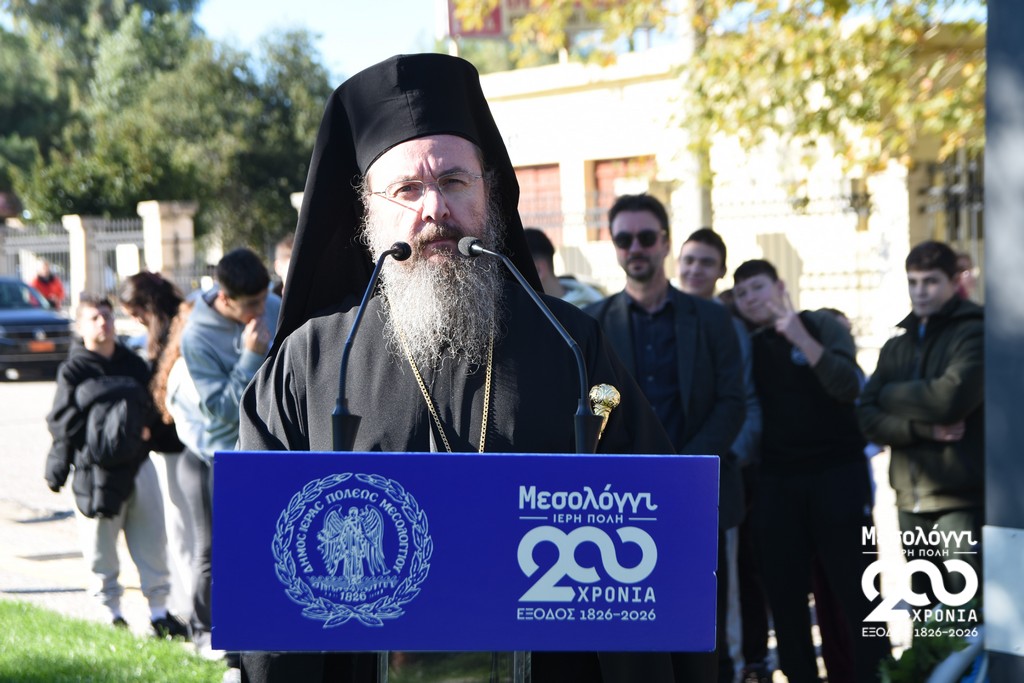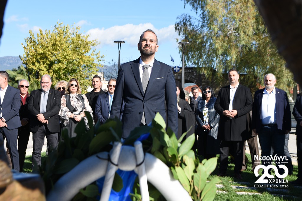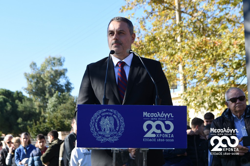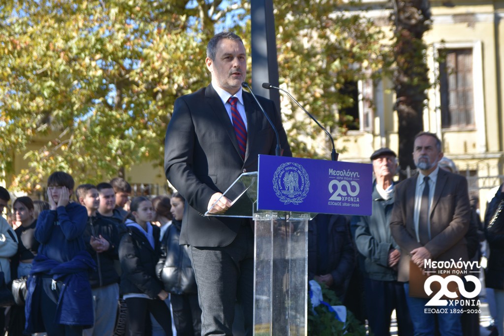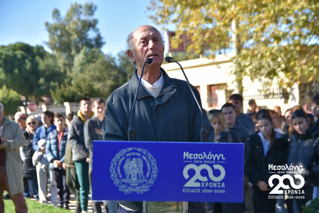 Στον χαιρετισμό του, ο Δήμαρχος Ιεράς Πόλεως Μεσολογγίου, κ. Σπυρίδων Διαμαντόπουλος, ευχαρίστησε θερμά τον Περιφερειάρχη Δυτικής Ελλάδας, κ. Νεκτάριο Φαρμάκη, για την πρωτοβουλία και τη γενναιόδωρη χειρονομία του να δημιουργηθεί ο ανδριάντας. Επίσης, ευχαρίστησε τους συνεργάτες του για την ολοκλήρωση της ανάπλασης της πλατείας Δημογέροντα Χρήστου Καψάλη, επισημαίνοντας ότι η αναβάθμιση της Πύλης και της εισόδου της πόλης δεν περιορίζεται μόνο στο αισθητικό μέρος. Αντιθέτως, αποσκοπεί στη δημιουργία ενός ιστορικού τοπόσημου, που θα συμβολίζει τη θυσία των ηρώων και θα ενισχύει τη συλλογική μνήμη του τόπου, με επιπλέον αναβάθμιση και εξωραϊσμό του χώρου.