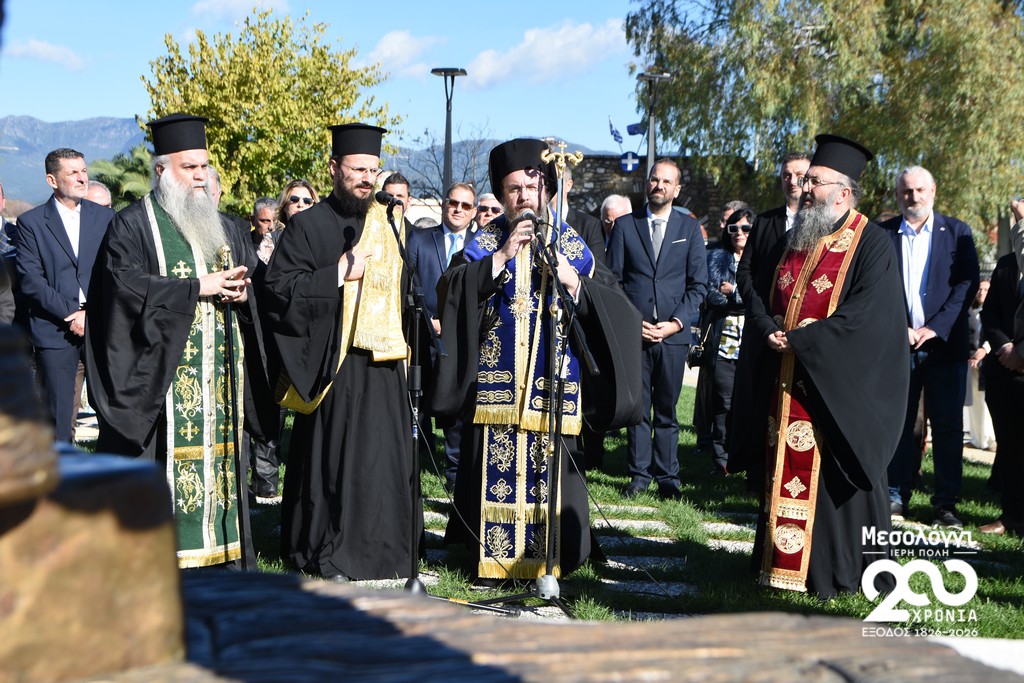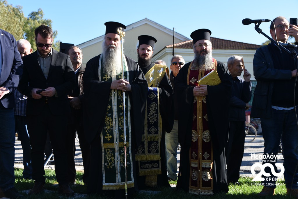 Τα αποκαλυπτήρια του ανδριάντα πραγματοποιήθηκαν από τον Σεβασμιώτατο Μητροπολίτη Αιτωλίας και Ακαρνανίας κ.κ. Δαμασκηνό, τον Περιφερειάρχη Δυτικής Ελλάδας, κ. Νεκτάριο Φαρμάκη, τον Δήμαρχο Ιεράς Πόλεως Μεσολογγίου, κ. Σπυρίδων Διαμαντόπουλο και τον γλύπτη Ευάγγελο Τύμπα, παρουσία του Αντιπεριφερειάρχη Αιτωλοακαρνανίας, κ. Θανάση Μαυρομμάτη.