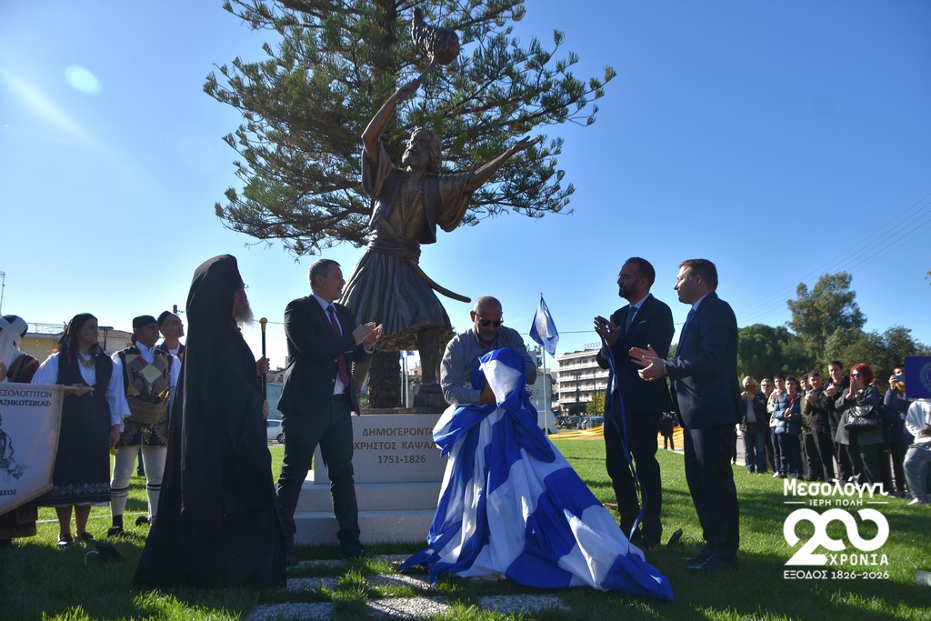 Με κάθε επισημότητα πραγματοποιήθηκαν τα αποκαλυπτήρια του ανδριάντα του Δημογέροντα Χρήστου Καψάλη στην Ιερά Πόλη Μεσολογγίου
