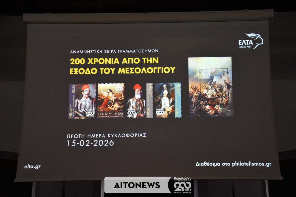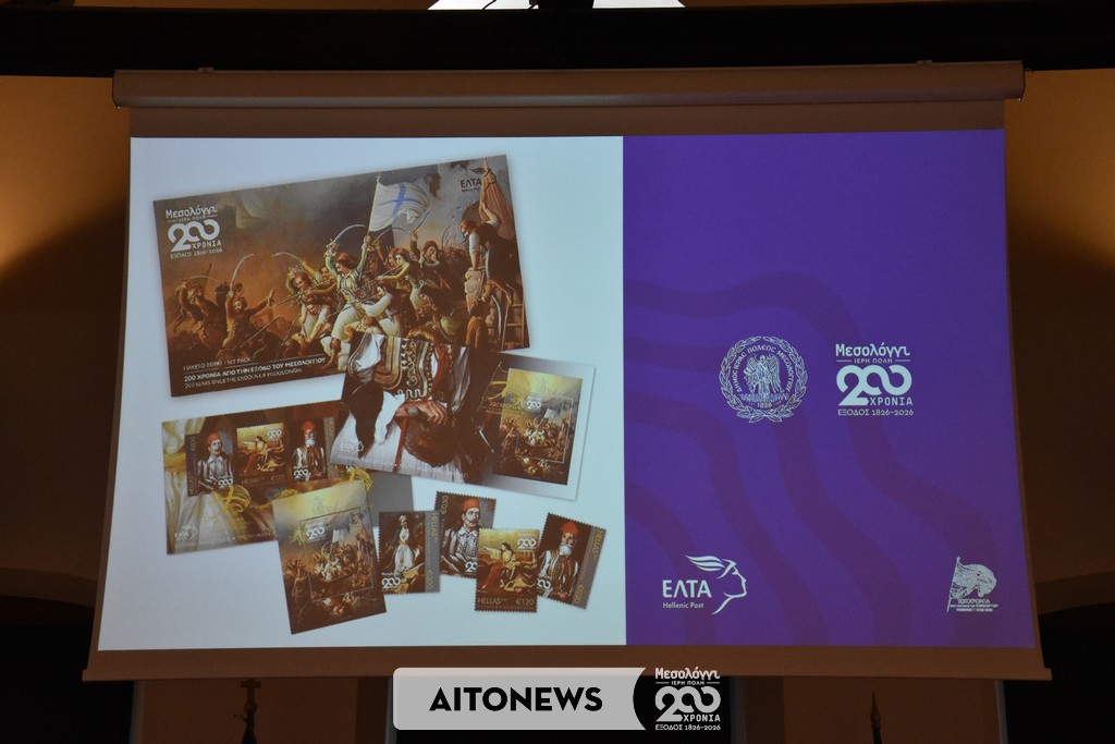 Με ιδιαίτερη επιτυχία και σημαντική προσέλευση κοινού πραγματοποιήθηκε την Κυριακή 15 Φεβρουαρίου 2026, στο Τρικούπειο Πολιτιστικό Κέντρο του Μεσολογγίου, η επίσημη παρουσίαση της Αναμνηστικής Σειράς Γραμματοσήμων – Φεγιέ με τίτλο «200 Χρόνια από την Έξοδο του Μεσολογγίου», στο πλαίσιο των επετειακών εκδηλώσεων της Διακοσιοστής Επετείου της Εξόδου που οργανώνει ο Δήμος Ιεράς Πόλεως Μεσολογγίου.