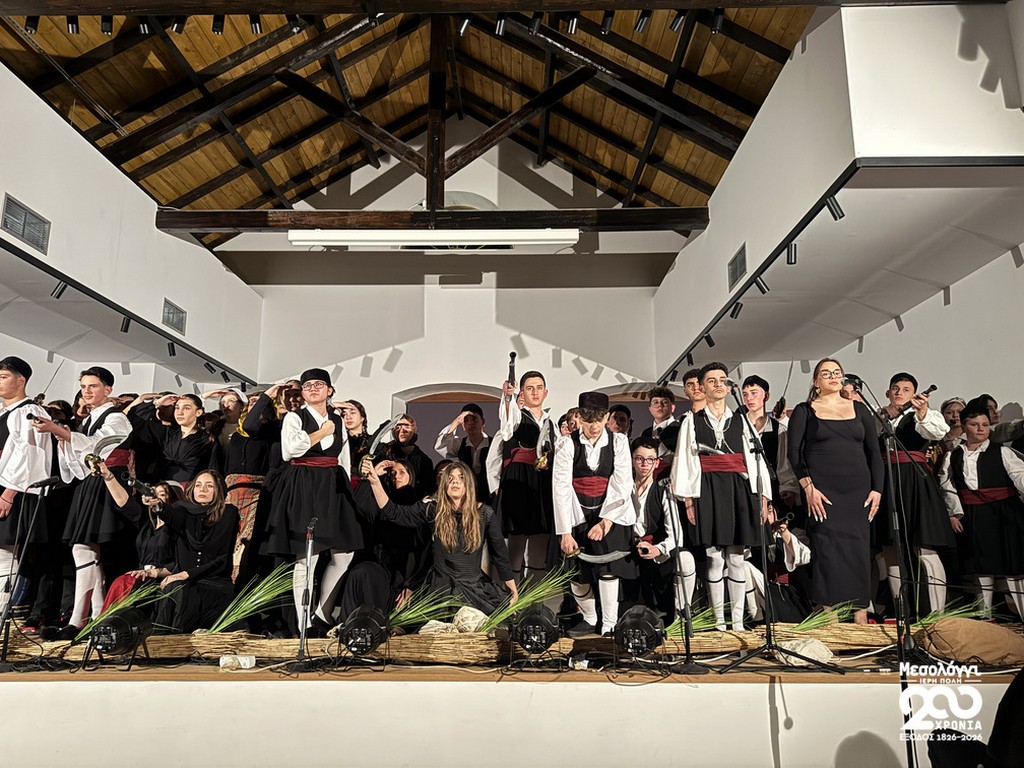 Μια ιδιαίτερα συγκινητική μουσικοθεατρική παράσταση παρουσιάστηκε χθες, Κυριακή 15 Μαρτίου 2026, στο Τρικούπειο Πολιτιστικό Κέντρο στο πλαίσιο των επετειακών εκδηλώσεων για τη Διακοσιοστή Επέτειο από την Έξοδο του Μεσολογγίου.