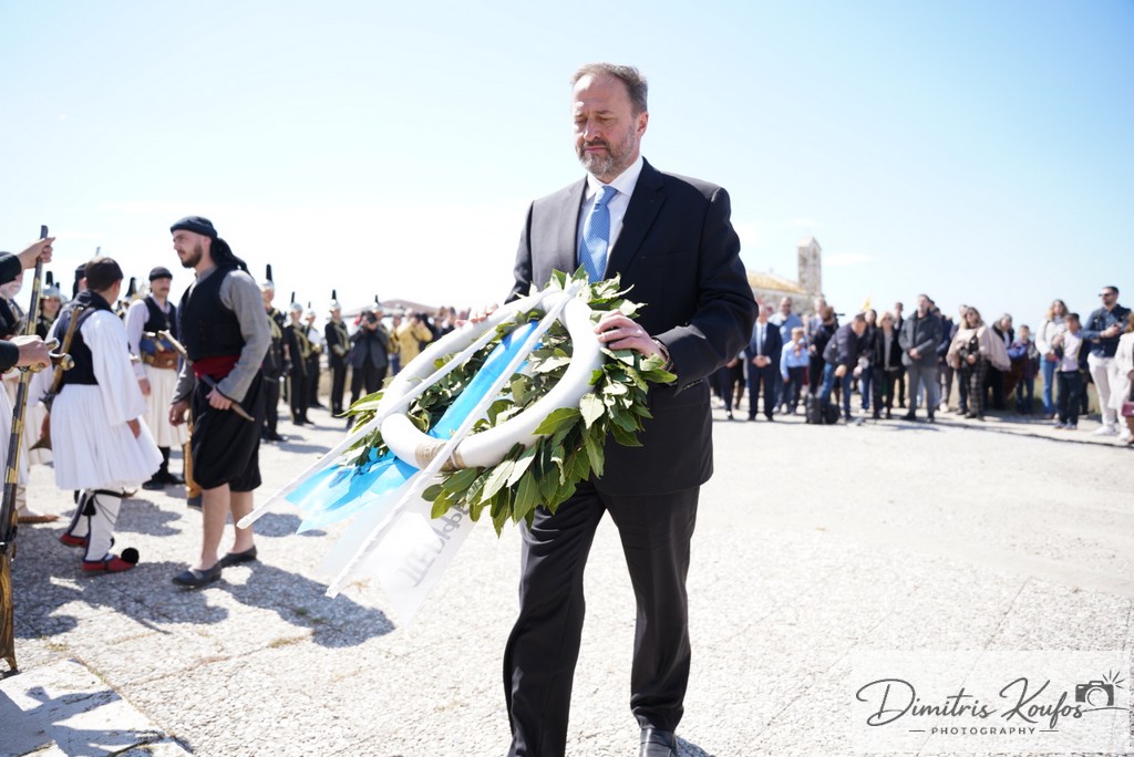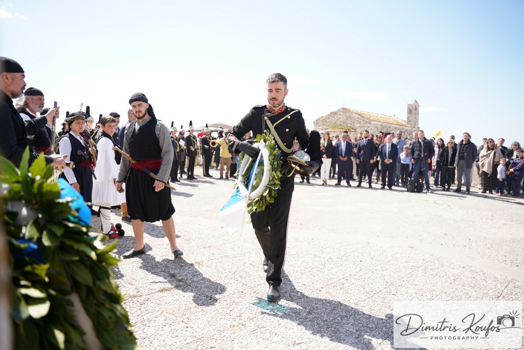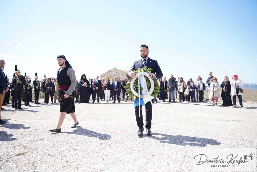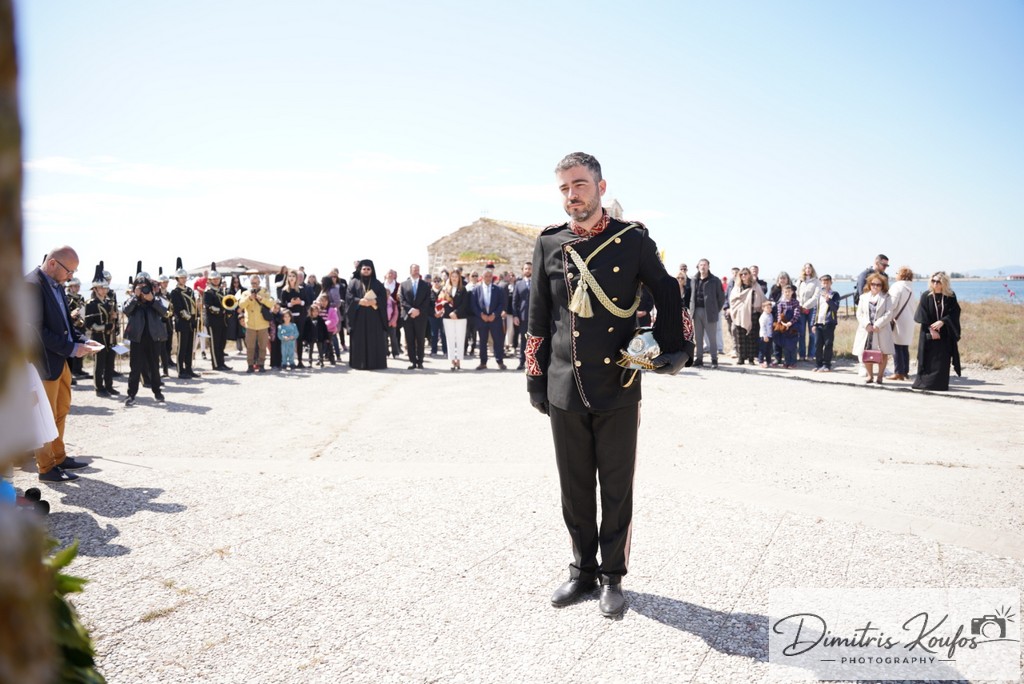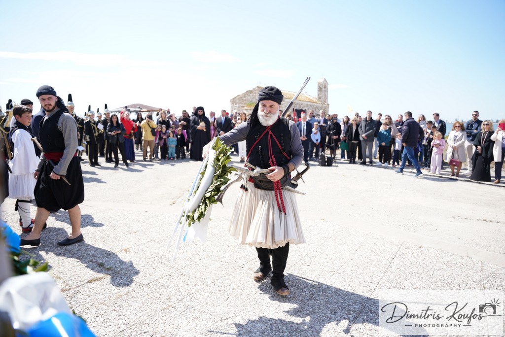 Ιδιαίτερα καθηλωτική ήταν η αφήγηση της μάχης από τον καταξιωμένο ηθοποιό Λεωνίδα Κακούρη, ο οποίος με ένταση και εκφραστικότητα μετέφερε το κοινό στα δραματικά γεγονότα της 25ης Μαρτίου 1826, αναδεικνύοντας το μέγεθος της θυσίας και της ανδρείας των υπερασπιστών του νησιδίου.