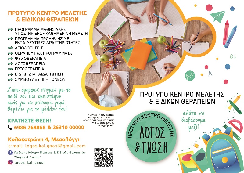 Στο Λόγος & Γνώση, πιστεύουμε ότι κάθε παιδί έχει τη δυνατότητα να εξελιχθεί, να μάθει και να αναδείξει τις ικανότητές του. Με αγάπη, συνέπεια και επιστημονική γνώση, δημιουργήσαμε έναν χώρο όπου η μάθηση γίνεται δημιουργική διαδικασία, η θεραπεία γίνεται ενδυνάμωση και η καθημερινότητα μετατρέπεται σε ευκαιρία για πρόοδο.