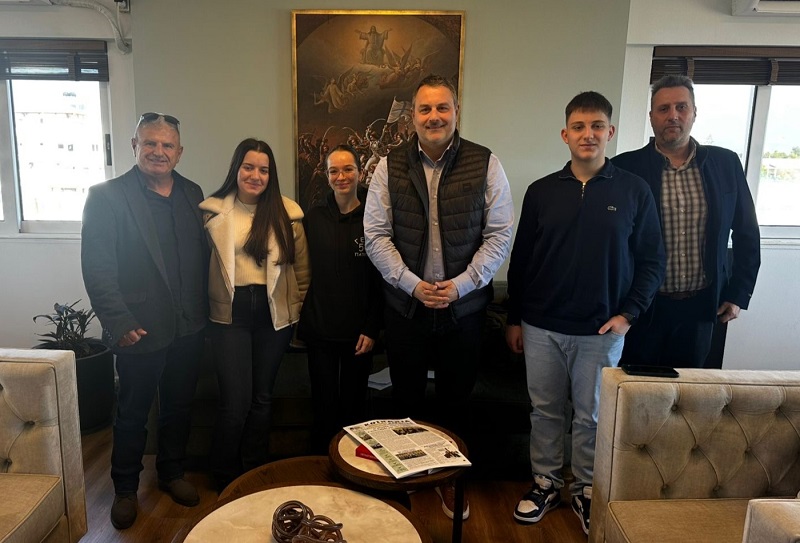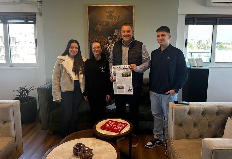 Μαθητές της Πολιτιστικής Ομάδας του 5ου Λυκείου Πατρών επισκέφθηκαν σήμερα, 2 Μαρτίου 2026, το Δήμαρχο της Ιεράς Πόλεως Μεσολογγίου κ. Σπυρίδωνα Διαμαντόπουλο. Η επίσκεψη έγινε με αφορμή συνέντευξη που ζήτησαν από το Δήμαρχο, για τη σχολική τους εφημερίδα με τίτλο «Κοινωνία Μαθητική».