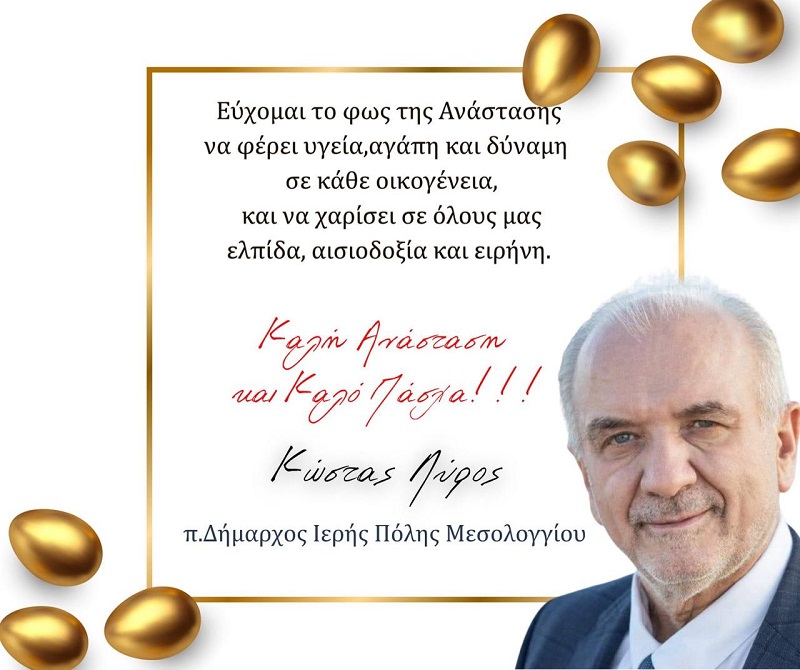 Με αυτές τις σκέψεις, εύχομαι σε όλες και όλους Καλή Ανάσταση και Καλό Πάσχα, με υγεία, δύναμη και αισιοδοξία.