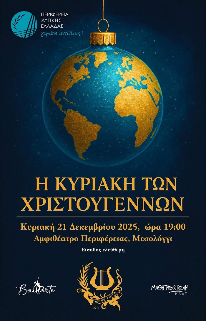 21 Δεκεμβρίου και ώρα 19:00 ,στο αμφιθέατρο της Περιφέρειας Δυτικής Ελλάδος.
