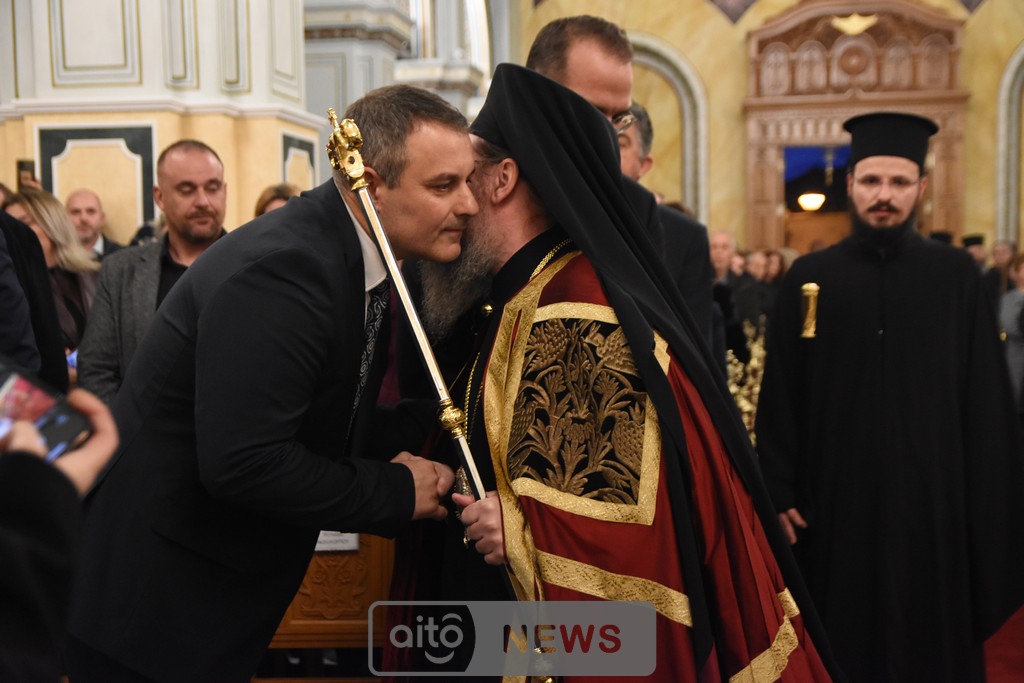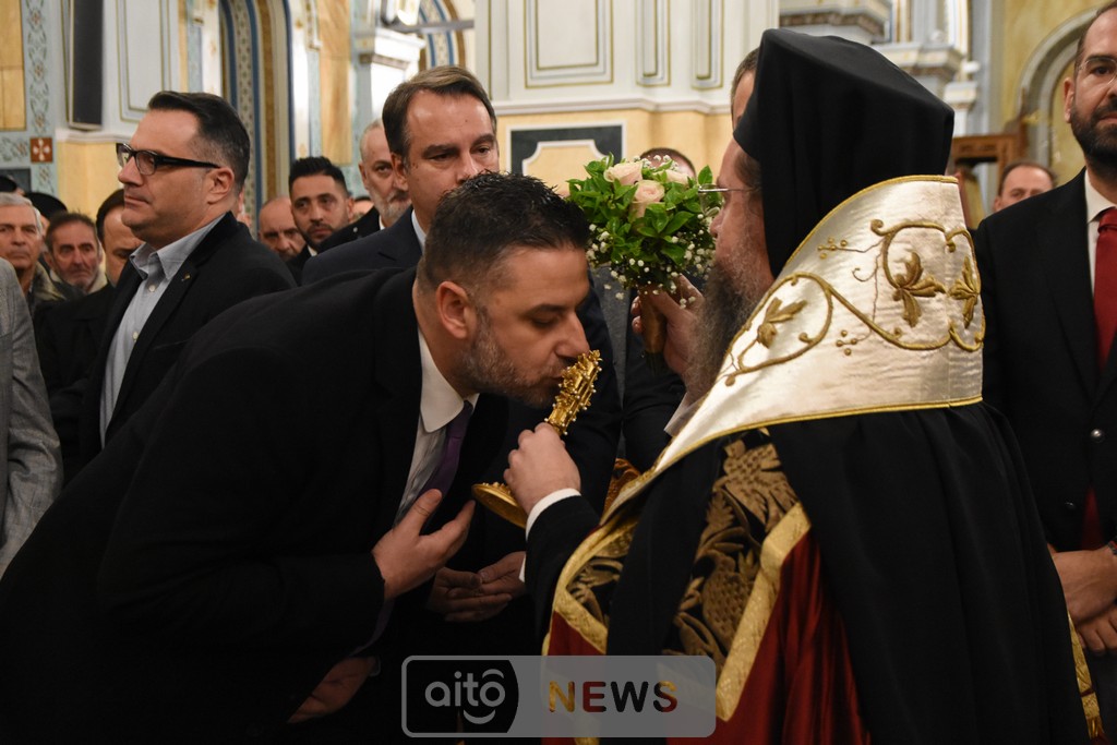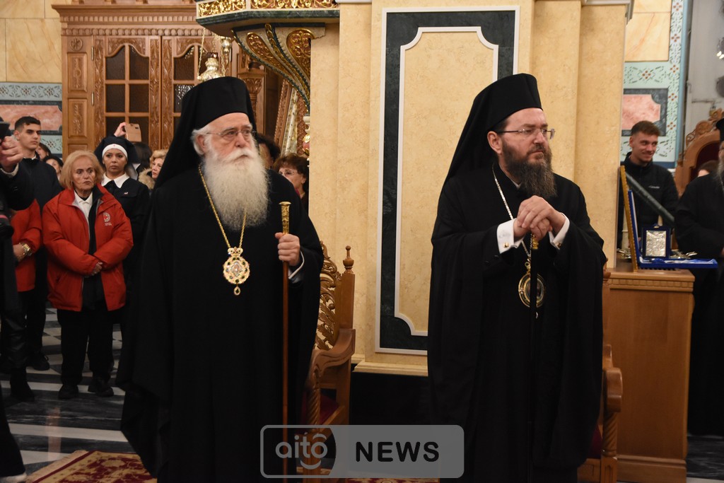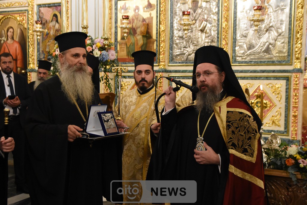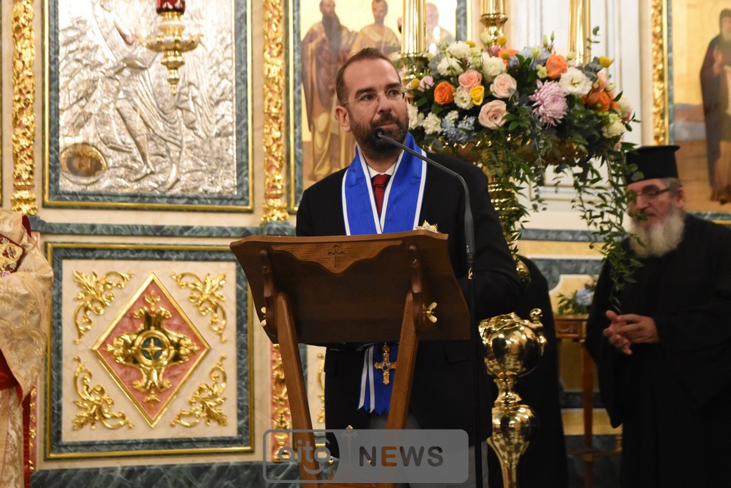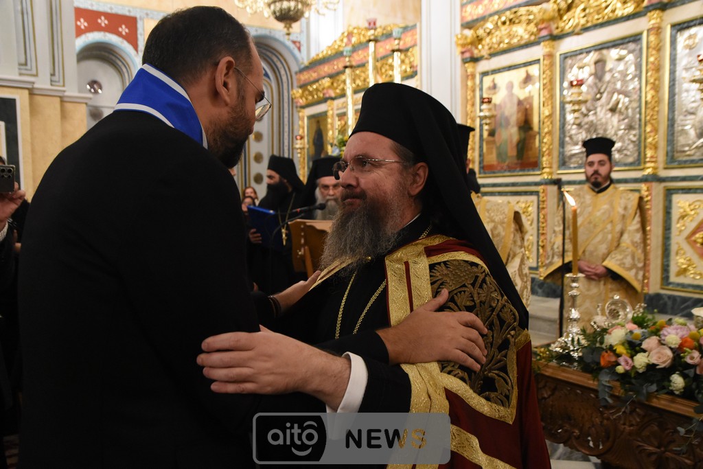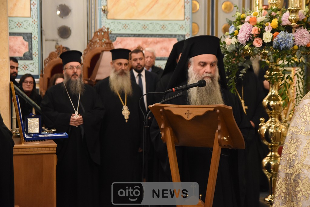 Όμως, υπάρχει και ένα δεύτερο πρόσωπο που στέκεται δίπλα μας, αφουγκράζεται την επισκοπική μας αγωνία και με την πίστη που διαθέτει, την οργανωτικότητα που τον διακρίνει και την πιστότητα στην διακονία που του έχει αναθέσει ο λαός του Θεού, επιχορήγησε με ένα πολύ μεγάλο ποσό που ξεπερνά τις 800.000 € το κύριο μέρος των ανακαινιστικών έργων του Ιερού μας Μητροπολιτικού Ναού. Είναι ο κ. Νεκτάριος Φαρμάκης. Και δεν είναι μόνο αυτό το έργο, αδελφοί μου. Ήδη υλοποιείται, όπως γνωρίζετε, η ανακαίνιση του ιστορικού μας Επισκοπείου, αλλά και της Βυζαντινής Ιεράς Μονής της Παναγίας της Μυρτιάς.