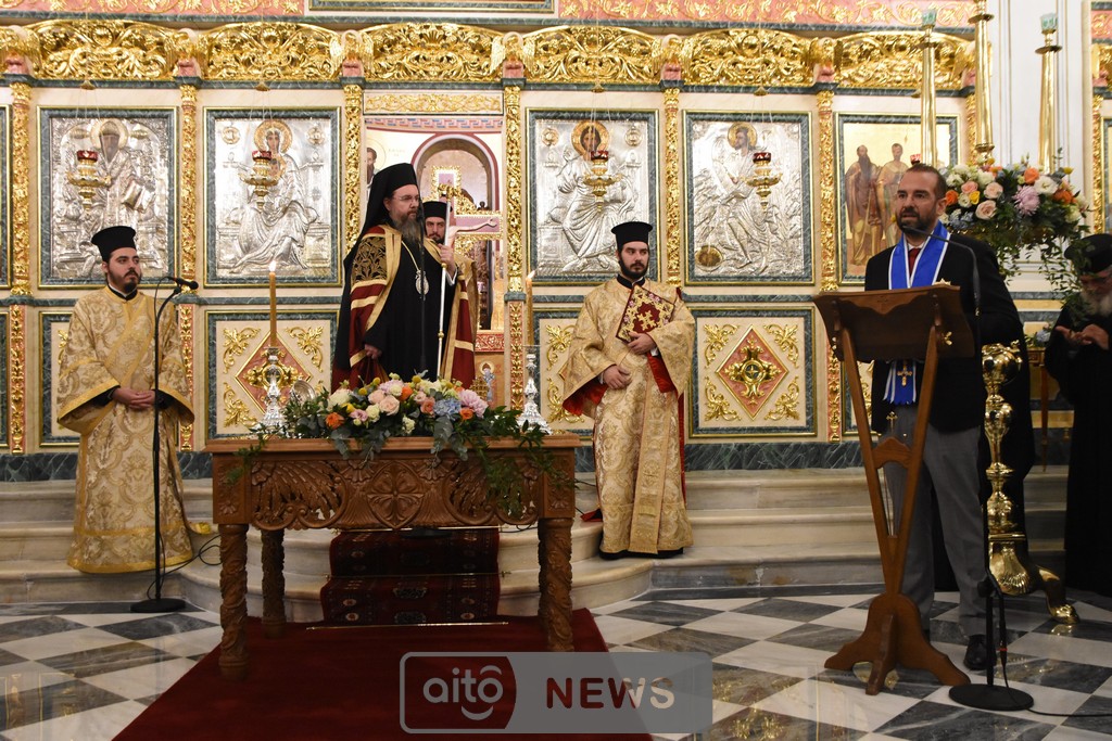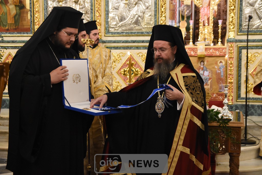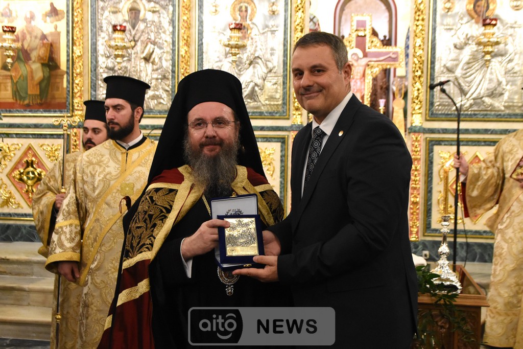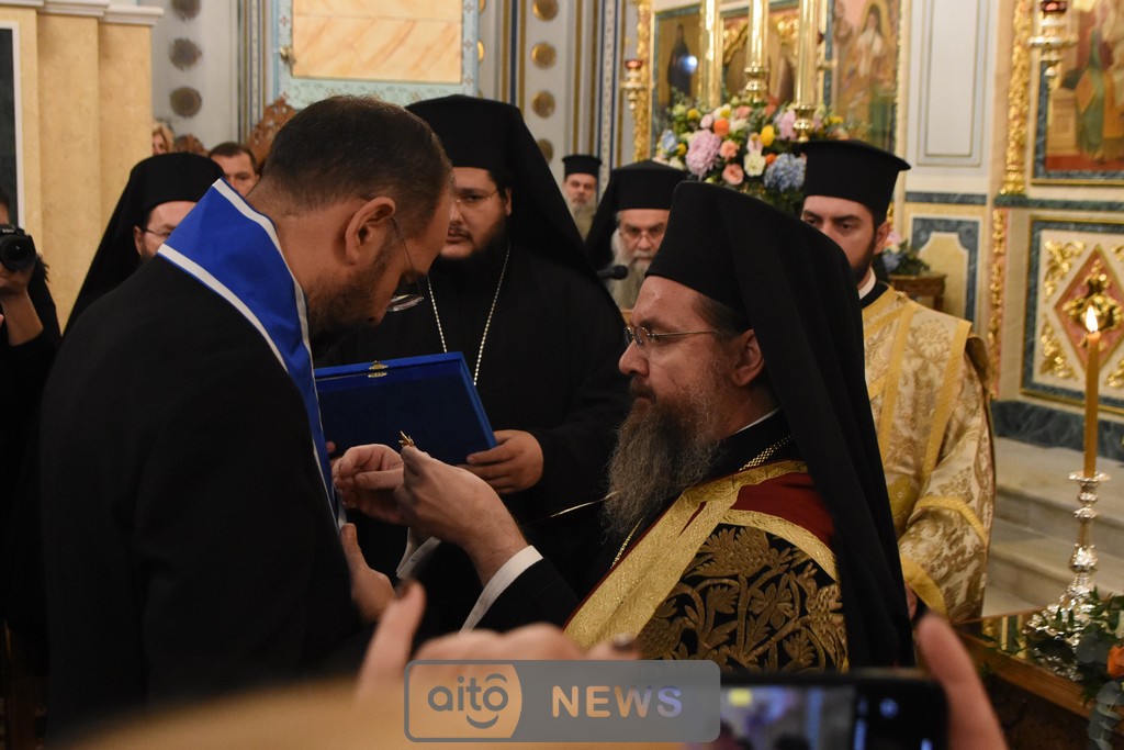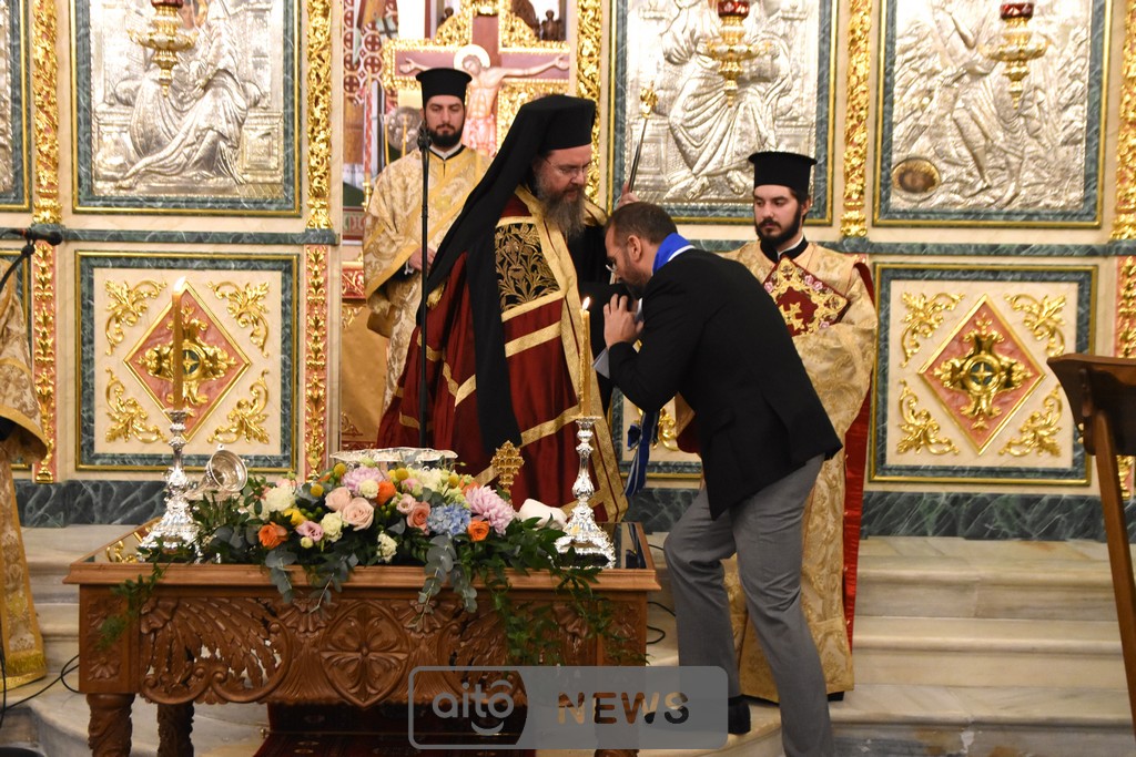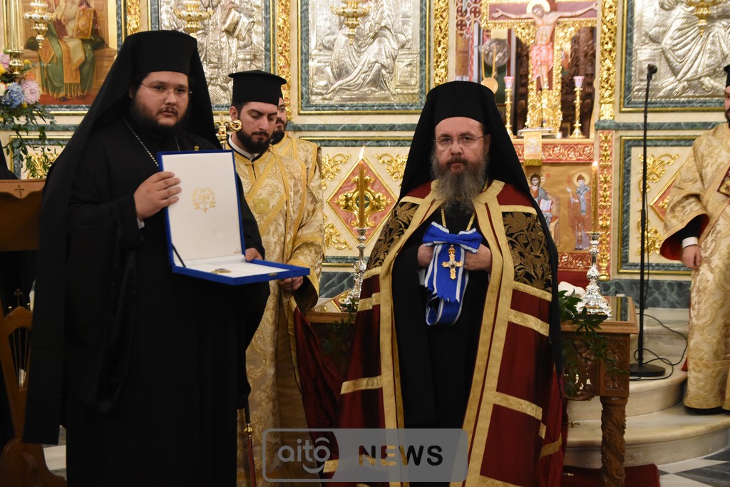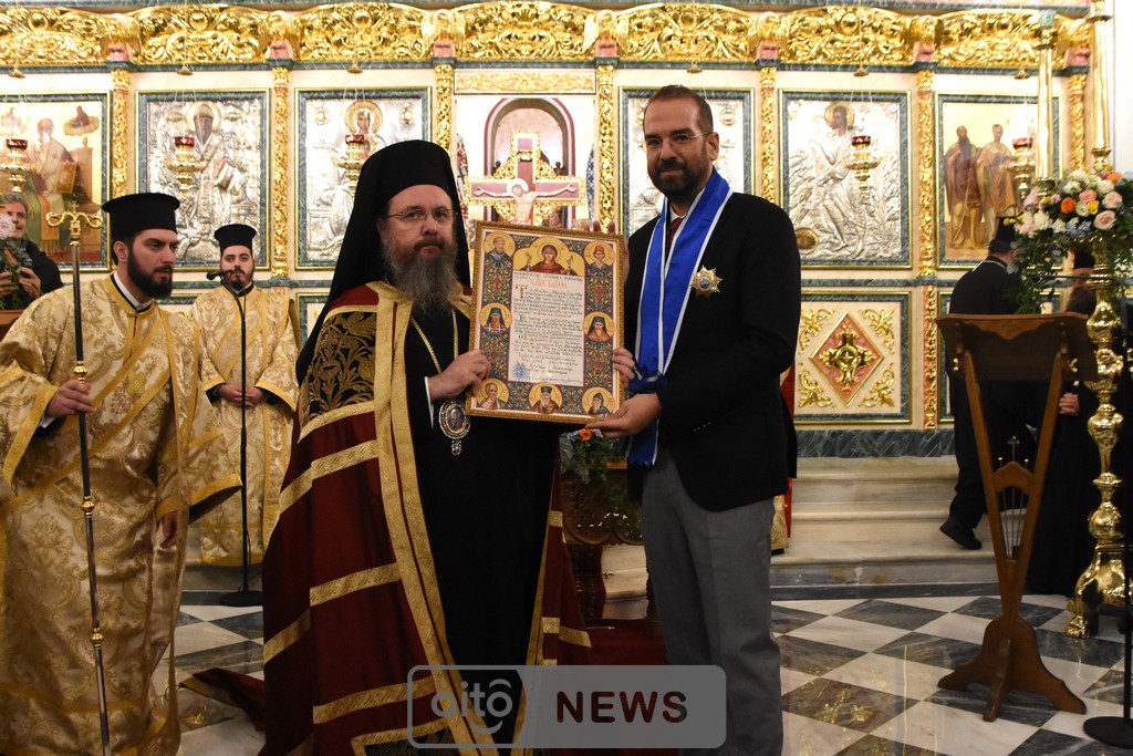 Ο Σεβασμιώτατος Μητροπολίτης Αιτωλίας και Ακαρνανίας αμέσως μετά, απένειμε την Ανώτατη Τιμητική Διάκριση της Ιεράς Μητροπόλεως Αιτωλίας και Ακαρνανίας, ήτοι τον Χρυσούν Σταυρόν μετά Μεταλλίου, στον Εντιμώτατο κ. Νεκτάριο Φαρμάκη, Περιφερειάρχη Δυτικής Ελλάδας για την μεγάλη και πολλαπλή συμβολή του στην ανακαίνιση του Ιερού Μητροπολιτικού Ναού.