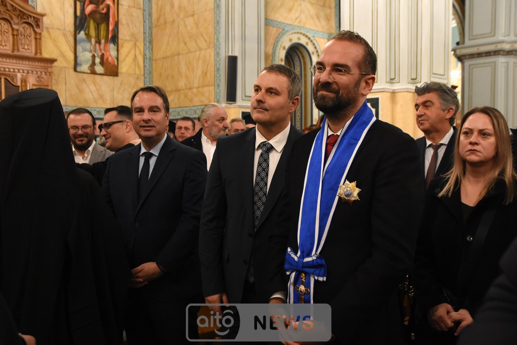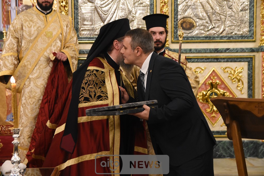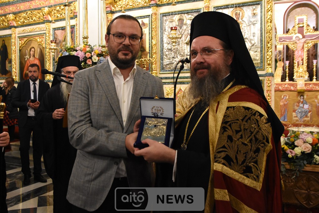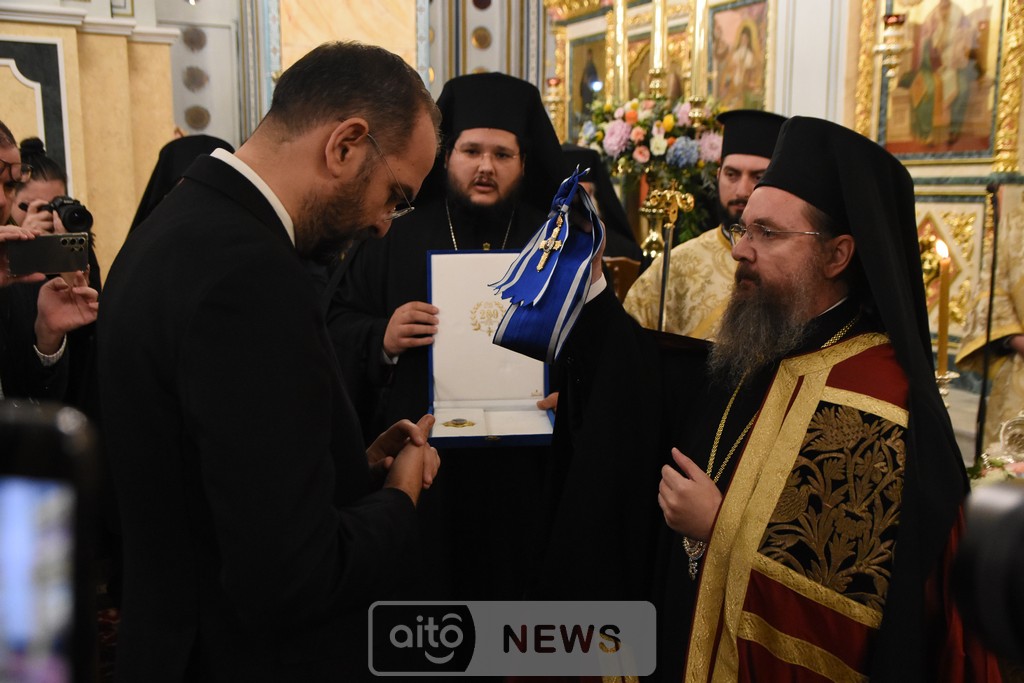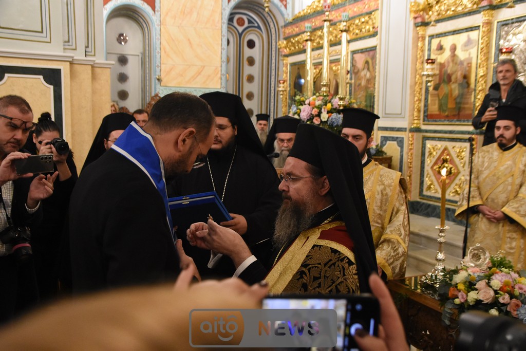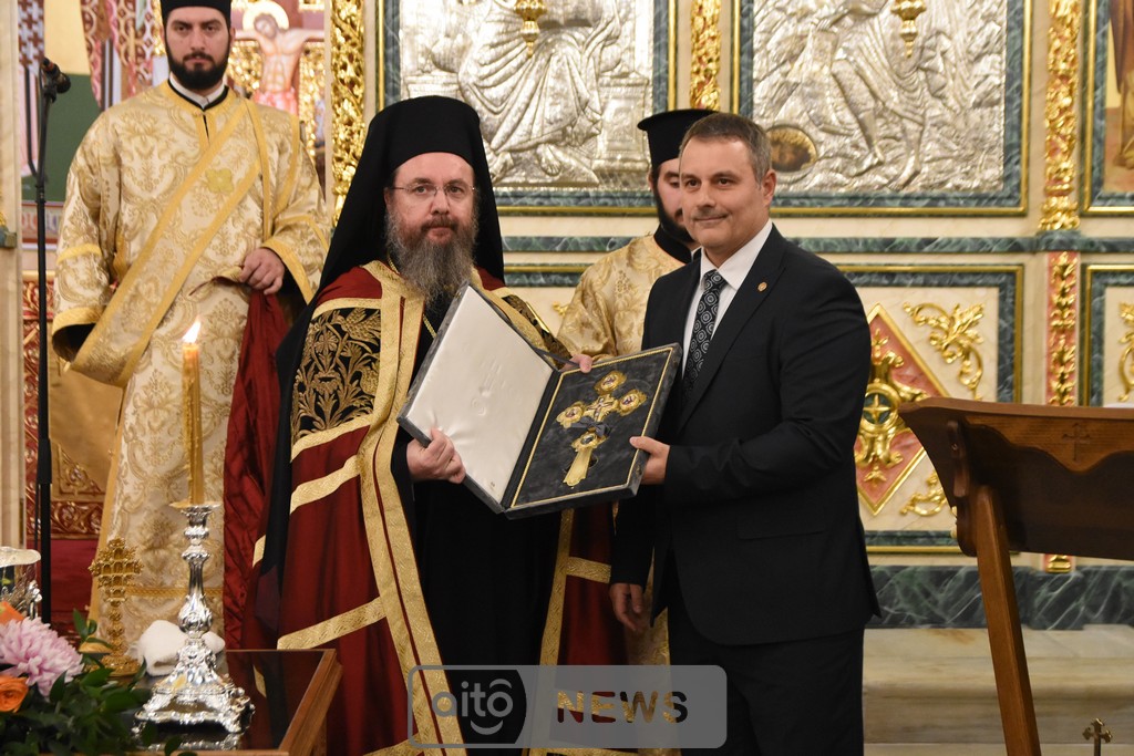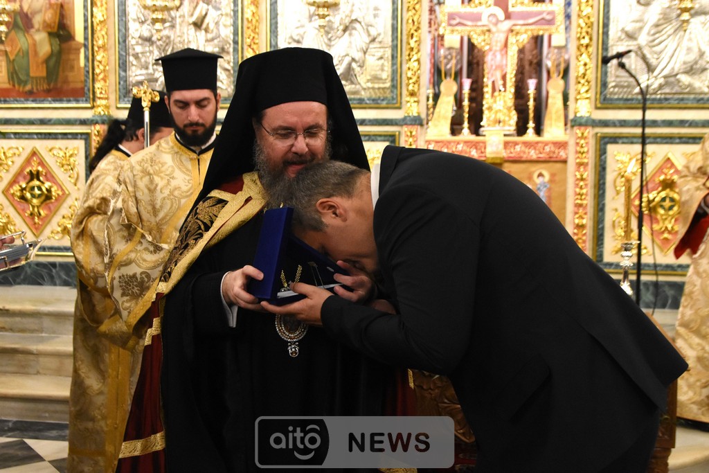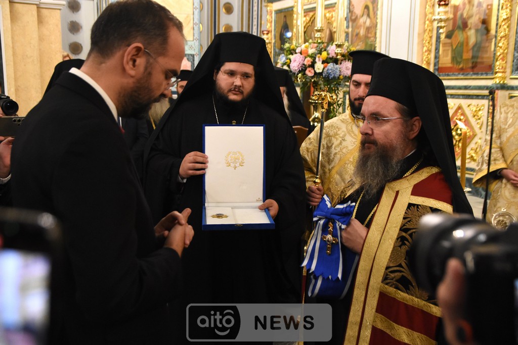 Ο Σεβασμιώτατος Μητροπολίτης Αιτωλίας και Ακαρνανίας αμέσως μετά, απένειμε την Ανώτατη Τιμητική Διάκριση της Ιεράς Μητροπόλεως Αιτωλίας και Ακαρνανίας, ήτοι τον Χρυσούν Σταυρόν μετά Μεταλλίου, στον Εντιμώτατο κ. Νεκτάριο Φαρμάκη, Περιφερειάρχη Δυτικής Ελλάδας για την μεγάλη και πολλαπλή συμβολή του στην ανακαίνιση του Ιερού Μητροπολιτικού Ναού.