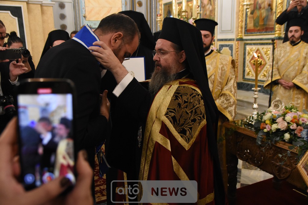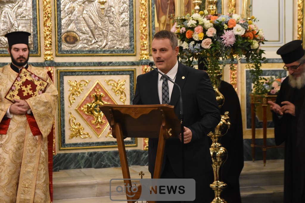 Θα μου επιτρέψετε να αναφερθώ στον απόντα σωματικά, λόγω ανειλημμένων υποχρεώσεων, αλλά νοερώς ευρισκόμενο ανάμεσά μας, Μεγάλο Ευεργέτη ολοκλήρου της Ορθοδοξίας, τον κ. Αθανάσιο Μαρτίνο. Έναν πιστό άνθρωπο του Θεού, ο οποίος καθημερινά προσφέρει μεγάλα έργα λατρευτικής, φιλανθρωπικής, εκπαιδευτικής και κοινωνικής δράσεως στην πατρίδα μας. Έναν άνθρωπο που αγαπά και στηρίζει τα πρεσβυγενή Πατριαρχεία, που σέβεται και αγαπά το Αγιώνυμο Όρος και ολόκληρη την Ορθοδοξία.