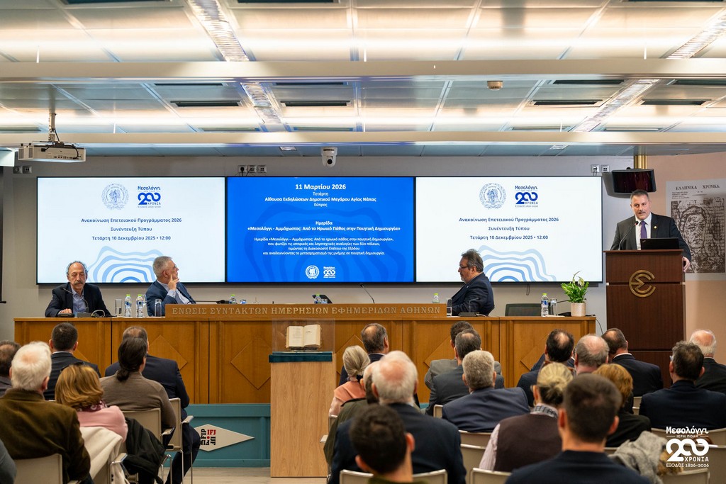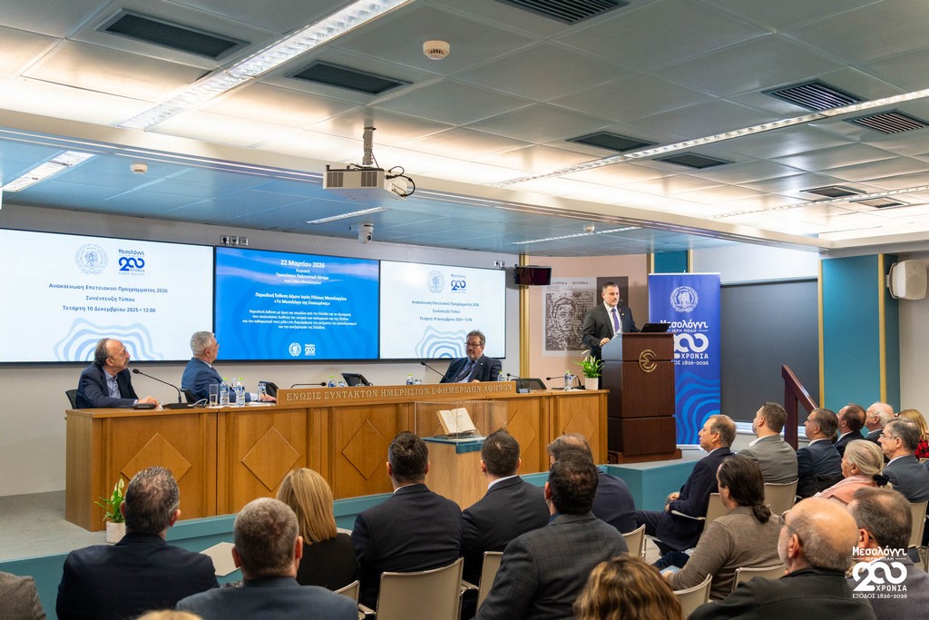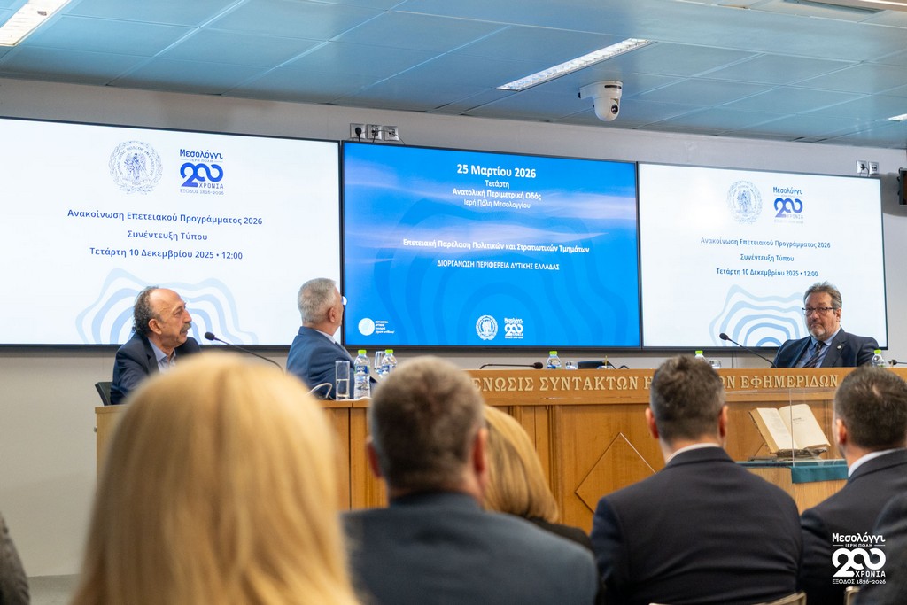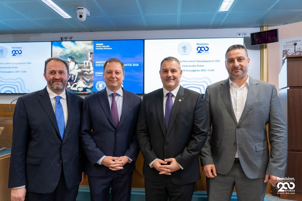 Σήμερα Τετάρτη 10 Δεκεμβρίου 2025, στην αίθουσα «Γιώργος Καράντζας» της ΕΣΗΕΑ, πραγματοποιήθηκε συνέντευξη Τύπου του Δημάρχου Ιεράς Πόλεως Μεσολογγίου, Σπυρίδωνος Β. Διαμαντοπούλου, κατά την οποία παρουσιάστηκε το πρόγραμμα εκδηλώσεων για τη Διακοσιοστή Επέτειο της Εξόδου.