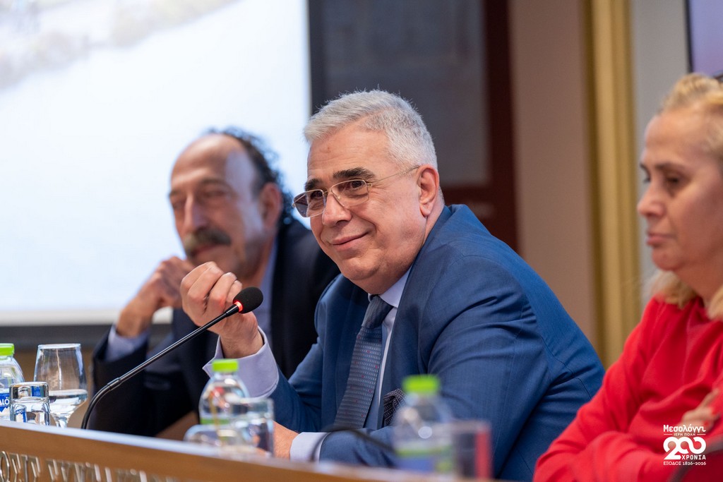 Στη συνέχεια, ο Λευτέρης Σκιαδάς, μέλος του Μορφωτικού Ιδρύματος της ΕΣΗΕΑ, αναφέρθηκε στον ρόλο της Ένωσης στη διάδοση του ιστορικού μηνύματος της Εξόδου, υπογραμμίζοντας τη σημασία της δημοσιογραφικής κοινότητας στη διαχρονική ανάδειξη του γεγονότος.