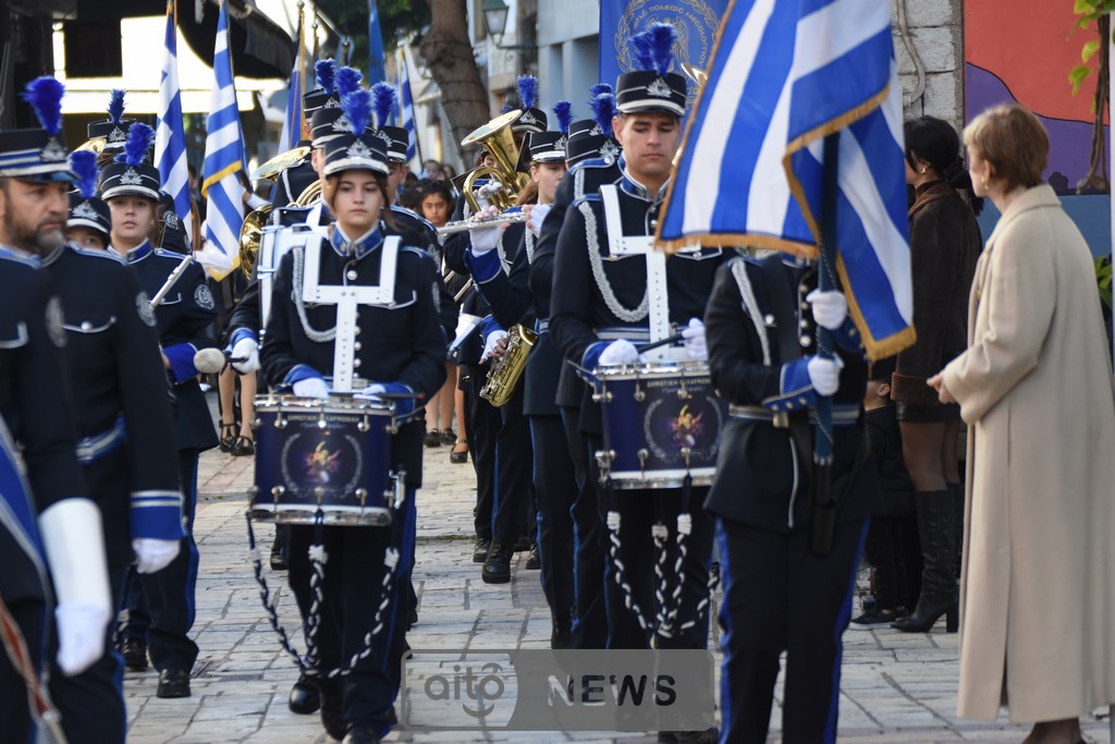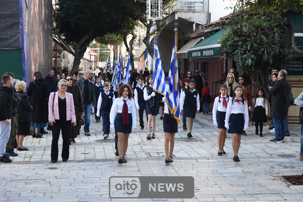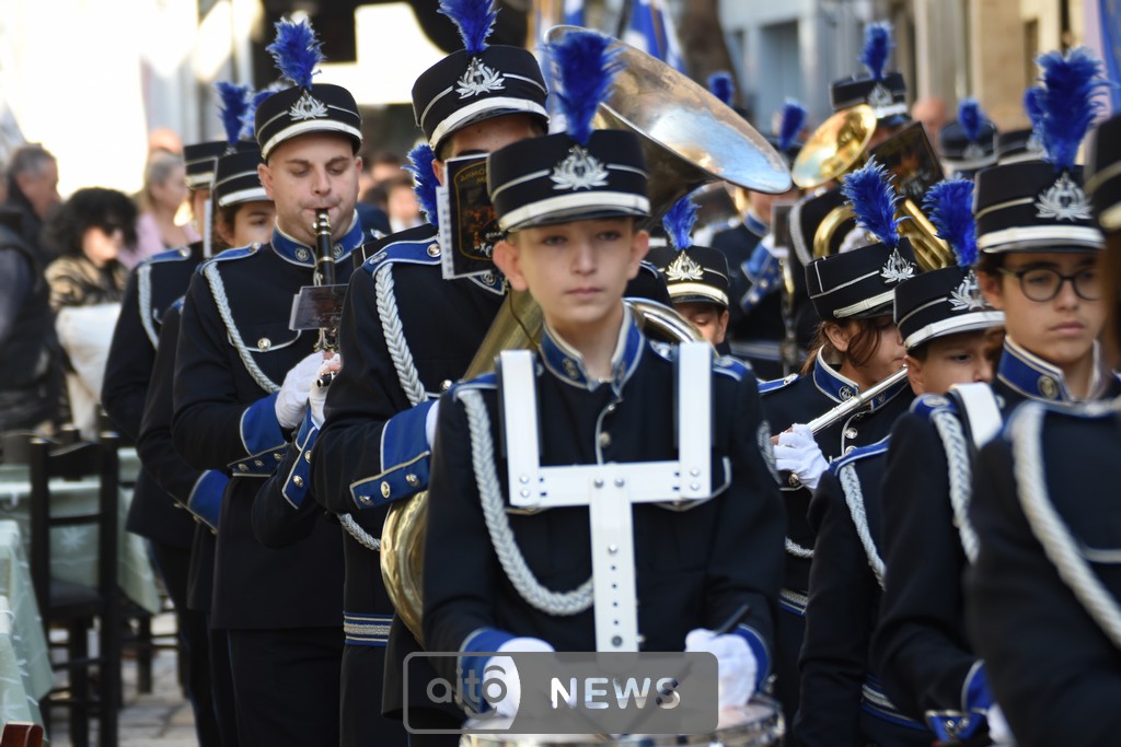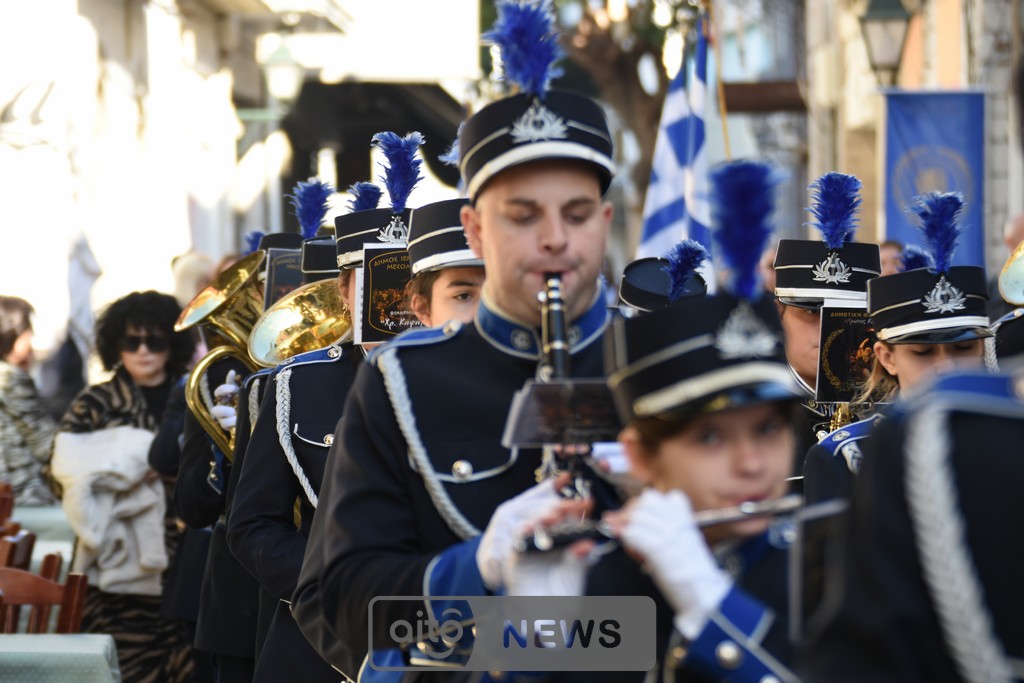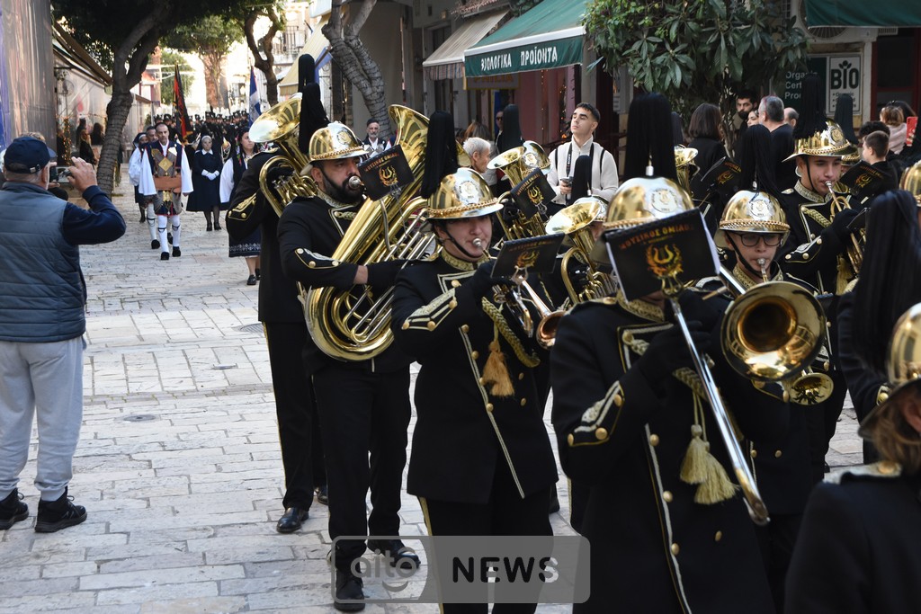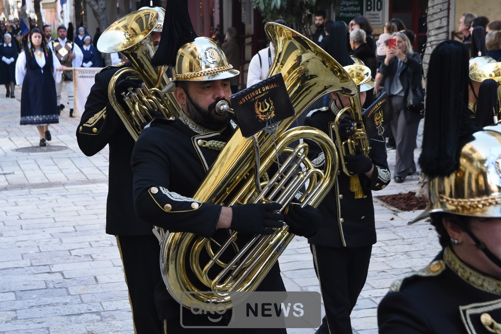 Ακολούθησε η καθιερωμένη λιτάνευση της ιερής εικόνας στους δρόμους της πόλης, με τη συμμετοχή και των τριών Φιλαρμονικών του Μεσολογγίου, στρατιωτικού αγήματος, εκπροσώπων συλλόγων και φορέων και σημαιοφόρων μαθητών από σχολεία της περιοχής. Η λιτανευτική πομπή κατέληξε στην κεντρική πλατεία, όπου τελέστηκε η καθιερωμένη αρτοκλασία υπέρ των Αρχών και του λαού.
