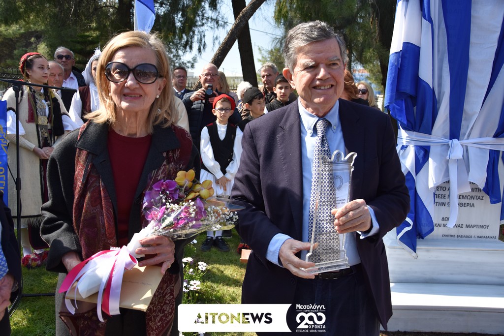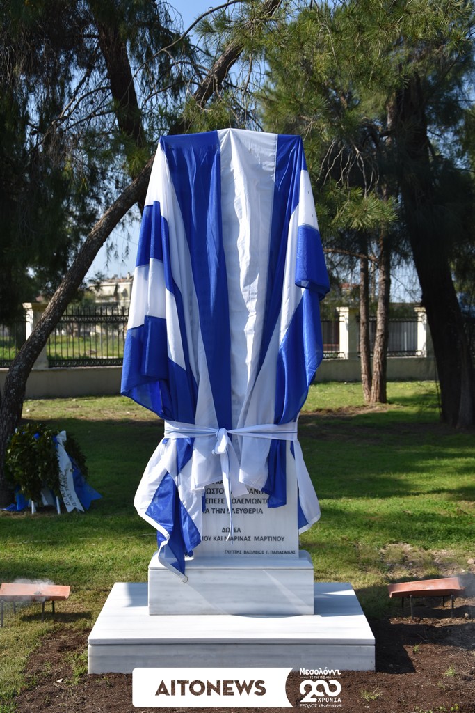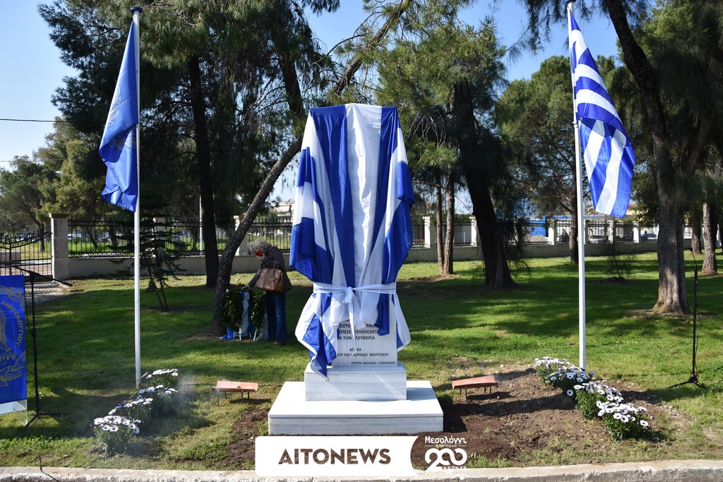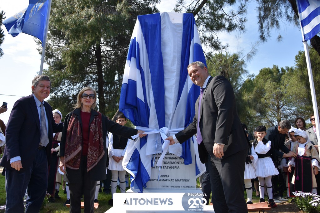 Τα αποκαλυπτήρια του μνημείου πραγματοποιήθηκαν από τον Δήμαρχο της Ιεράς Πόλεως Μεσολογγίου Σπυρίδωνα Διαμαντόπουλο μαζί με τους δωρητές του έργου Αθανάσιο και Μαρίνα Μαρτίνου, σε μια ιδιαίτερα συγκινητική στιγμή της εκδήλωσης.